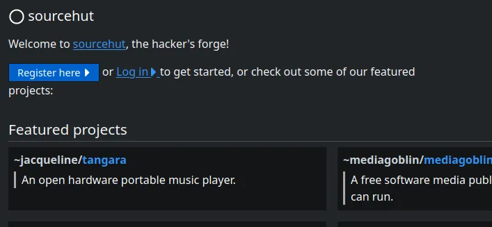 I really like SourceHut. When you go to their homepage, they’re not showing off their fancy CSS effects or telling you about their AI offerings. They give you a simple user interface and some of the projects they host.