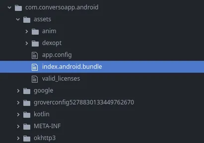 - 2023-05-05: My response: ‘Your app is developed in React Native. Simply rename the Converso APK file to a ‘.7z’ file, and extract the ‘assets/index.android.bundle’ file. This file contains the bundled source code for Converso and its JavaScript dependencies. This is not something to protect against – other apps are the same. And besides, even if you could make this process harder, it is always unsafe to rely on client-side enforcement of server-side security.’
