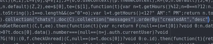 I couldn’t access the chats or messages collections – it looks like there is some kind of permissions scheme in place here, finally. I’m not sure what these security rules are – I might come back to this later. Back to the code: