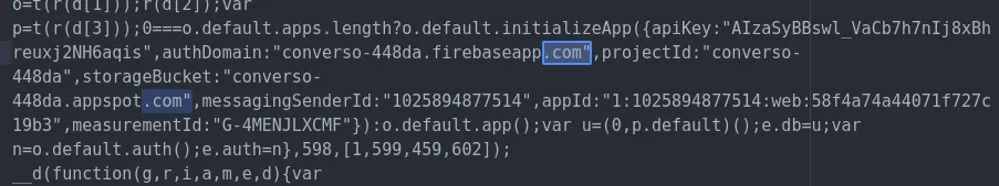 First thing I notice is that they’ve included measurementId in their Firebase config, which is an optional field a developer can include to enable Google Analytics tracking. Nothing wrong with that, but it surely shouldn’t exist in an app that claims ‘absolutely no use of user data’.