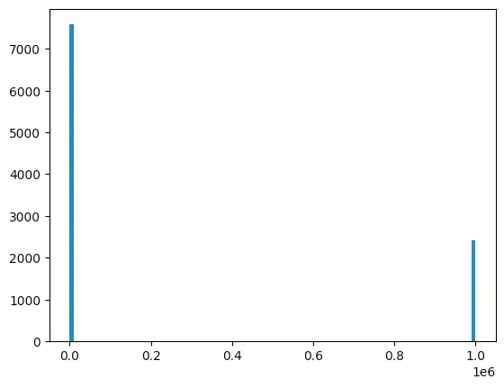 ~75% of the results were 0, and ~25% were 1000000. To see why, we can look at the EXPLAIN: